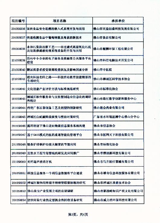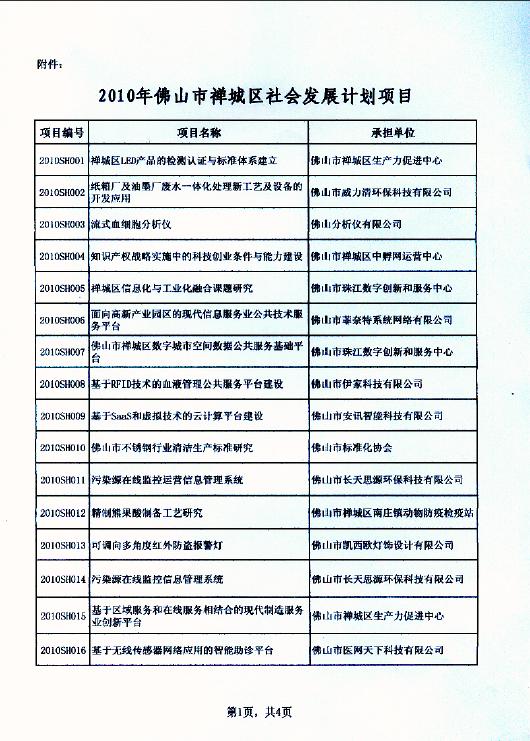 榮獲2010年禪城區(qū)科技計劃專項資金項目
